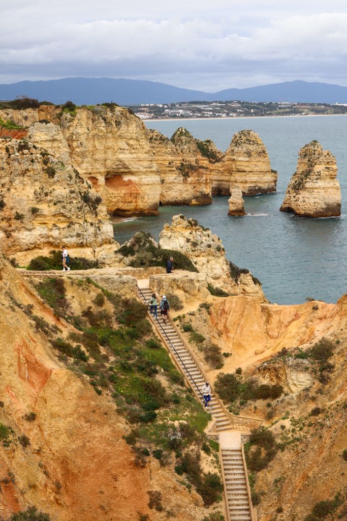 Daarna wandelen we in de buurt van Lagos langs de Ponta da Piedade. Ponta da Piedade is een landtong met een groep rotsformaties langs de kustlijn van de stad Lagos. Zeer mooi, zeker ook omdat er nog een groep dolfijnen voorbij zwemt 🐬