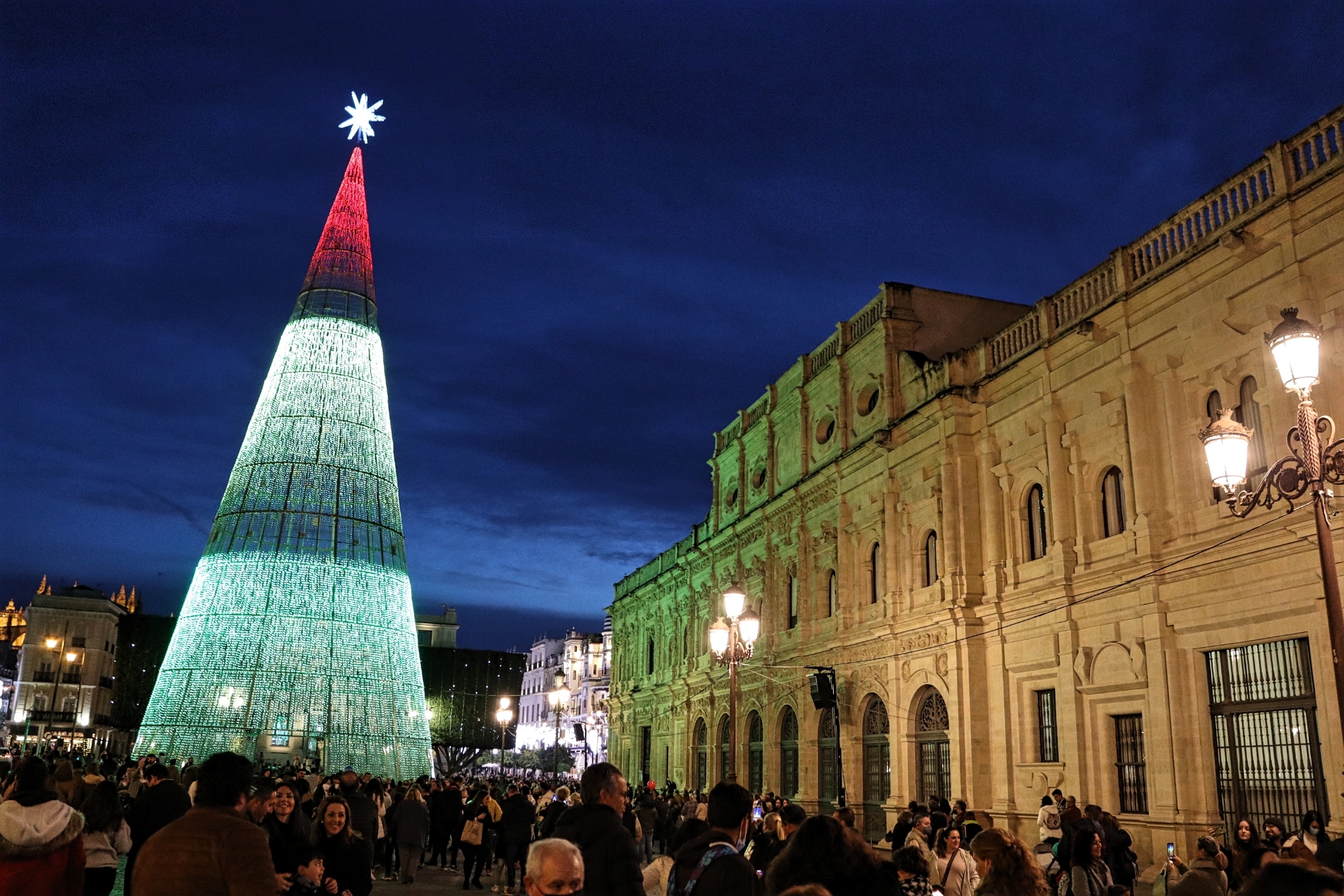 Nadat we ingecheckt zijn in ons hotel pakken we de metro naar het centrum. Daar dwalen we uren rond en zijn onder de indruk. Prachtige pleinen, mooie kerken, smalle straatjes, etc. Tot nu zien we elke dag in de Spaanse steden dat er flink aandacht is voor Kerstmis met veel verlichting. Sevilla spant de kroon. We lopen tegen een enorme kerstboom aan, waar de hele avond een licht show op te zien is. We eindigen de avond op een terras van een Cervezeria.