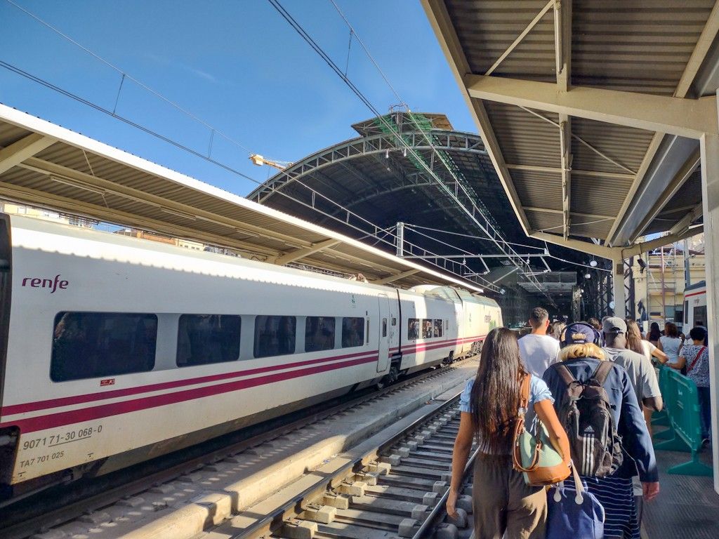 We pakken in de loop van de ochtend de trein (met airco 😀) van Cullera naar Valencia, Estacio del Nord. Daar doen we 45 minuten over. De binnenkant van het station wordt stevig gerenoveerd, het is een prachtig oud station.