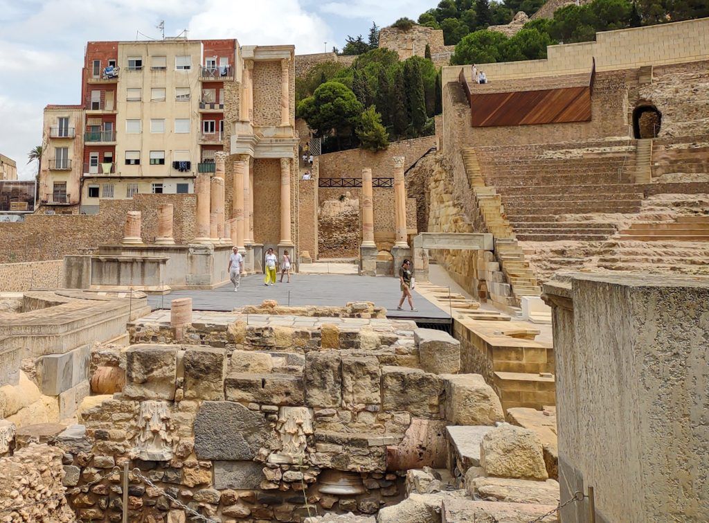 Na de zoutvlaktes rijden we naar Cartagena. Cartagena is naast een belangrijke havenstad, vooral bekend van de overblijfselen van een Romeins theater 🏛️ We parkeren de auto net buiten het centrum en wandelen de middag door de stad en belonen ons harde werken met een maaltijd 🍽️